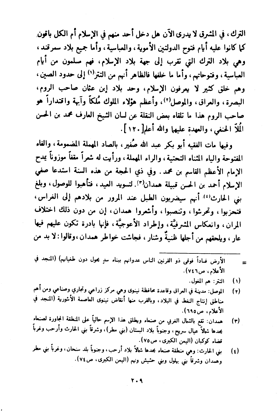 التّرْك فِي الْمشرق لَا يدْرِي الْآن هَل دخل أحد مِنْهُم فِي الْإِسْلَام أم الْكل باقون كَمَا كَانُوا عَلَيْهِ أَيَّام فتوح الدولتين الأموية والعباسية وَأما جَمِيع بِلَاد سَمَرْقَنْد وَهِي بِلَاد التّرْك الَّتِي تقرب إِلَى جِهَة بِلَاد الْإِسْلَام فهم مُسلمُونَ من أَيَّام العباسية وفتوحاتهم وَأما مَا خلفهَا فَالظَّاهِر أَنهم من التتر إِلَى حُدُود الصين وهم خلق كثير لَا يعْرفُونَ الْإِسْلَام وحد بِلَاد ابْن عُثْمَان صَاحب الرّوم الْبَصْرَة وَالْعراق والموصل وَأعظم هَؤُلَاءِ الْمُلُوك ملكا وآبهة واقتدارا هُوَ صَاحب الرّوم هَذَا مَا تَلقاهُ بعض النقلَة عَن لِسَان الشَّيْخ الْعَارِف مُحَمَّد بن الْحسن الملا الْحَنَفِيّ والعهدة عَلَيْهِمَا وَالله أعلم (120)