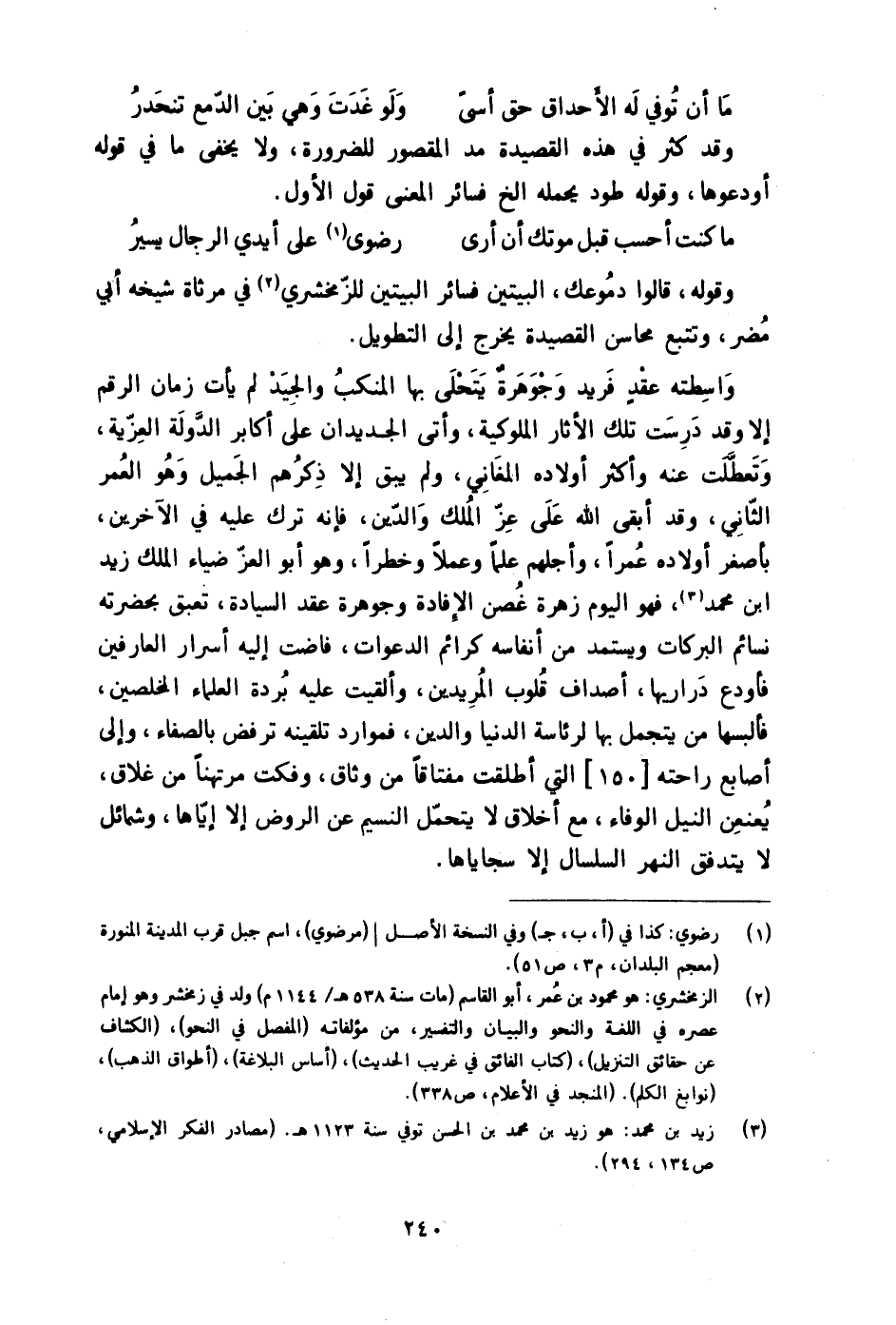 وَقَوله قَالُوا دموعك الْبَيْتَيْنِ فسائر الْبَيْتَيْنِ للزمخشري فِي مرثاة شَيْخه أبي مُضر وتتبع محَاسِن القصيدة يخرج إِلَى التَّطْوِيل