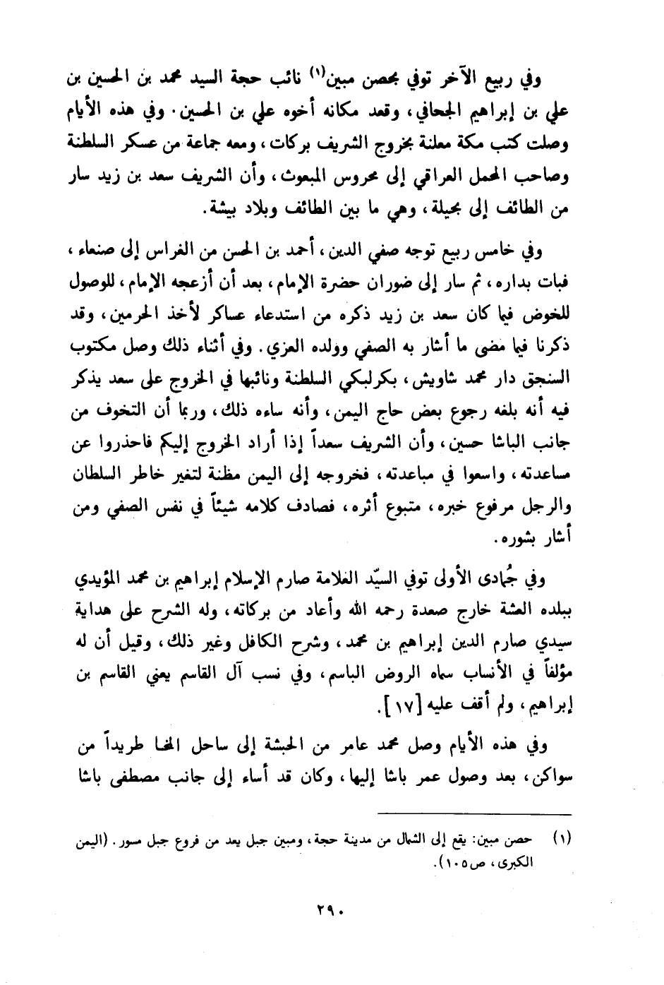 وَفِي ربيع الآخر توفّي بحصن مُبين نَائِب حجَّة السَّيِّد مُحَمَّد بن الْحُسَيْن بن عَليّ بن إِبْرَاهِيم الجحافي وَقعد مَكَانَهُ أَخُوهُ عَليّ بن الْحُسَيْن وَفِي هَذِه الْأَيَّام وصلت كتب مَكَّة معلنة بِخُرُوج الشريف بَرَكَات وَمَعَهُ جمَاعَة من عَسْكَر السلطنة وَصَاحب الْمحمل الْعِرَاقِيّ إِلَى محروس الْمَبْعُوث وَأَن الشريف سعد بن زيد سَار من الطَّائِف إِلَى بحيلة وَهِي مَا بَين الطَّائِف وبلاد بيشة