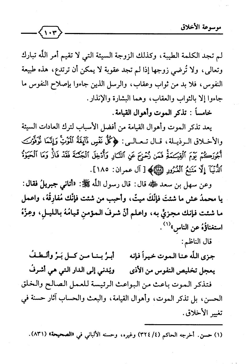 يعد تذكر الموت وأهوال القيامة من أفضل الأسباب لترك العادات السيئة والأخلاق الرذيلة، قال تعالى: {كُلُّ نَفْسٍ ذَائِقَةُ الْمَوْتِ وَإِنَّمَا تُوَفَّوْنَ أُجُورَكُمْ يَوْمَ الْقِيَامَةِ فَمَنْ زُحْزِحَ عَنِ النَّارِ وَأُدْخِلَ الْجَنَّةَ فَقَدْ فَازَ وَمَا الْحَيَاةُ الدُّنْيَا إِلَّا مَتَاعُ الْغُرُورِ (185)} [آل عمران: 185].