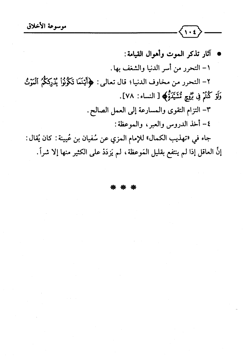 جاء في "تهذيب الكمال" للإمام المزي عن سُفيان بن عُيينة: كان يُقال: إن العاقل إذا لم ينتفع بقليل المَوعظة، لم يَزدَد على الكثير منها إلا شراً.