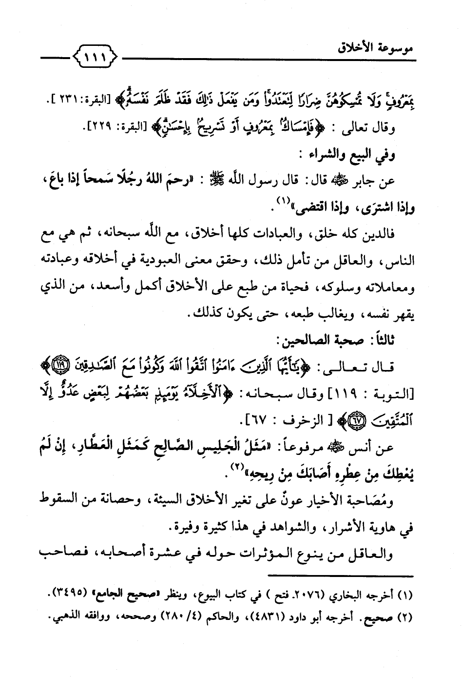 قال تعالى: {يَا أَيُّهَا الَّذِينَ آمَنُوا اتَّقُوا اللَّهَ وَكُونُوا مَعَ الصَّادِقِينَ (119)} [التوبة: 119]، وقال سبحانه: {الْأَخِلَّاءُ يَوْمَئِذٍ بَعْضُهُمْ لِبَعْضٍ عَدُوٌّ إِلَّا الْمُتَّقِينَ (67)} [الزخرف: 67].