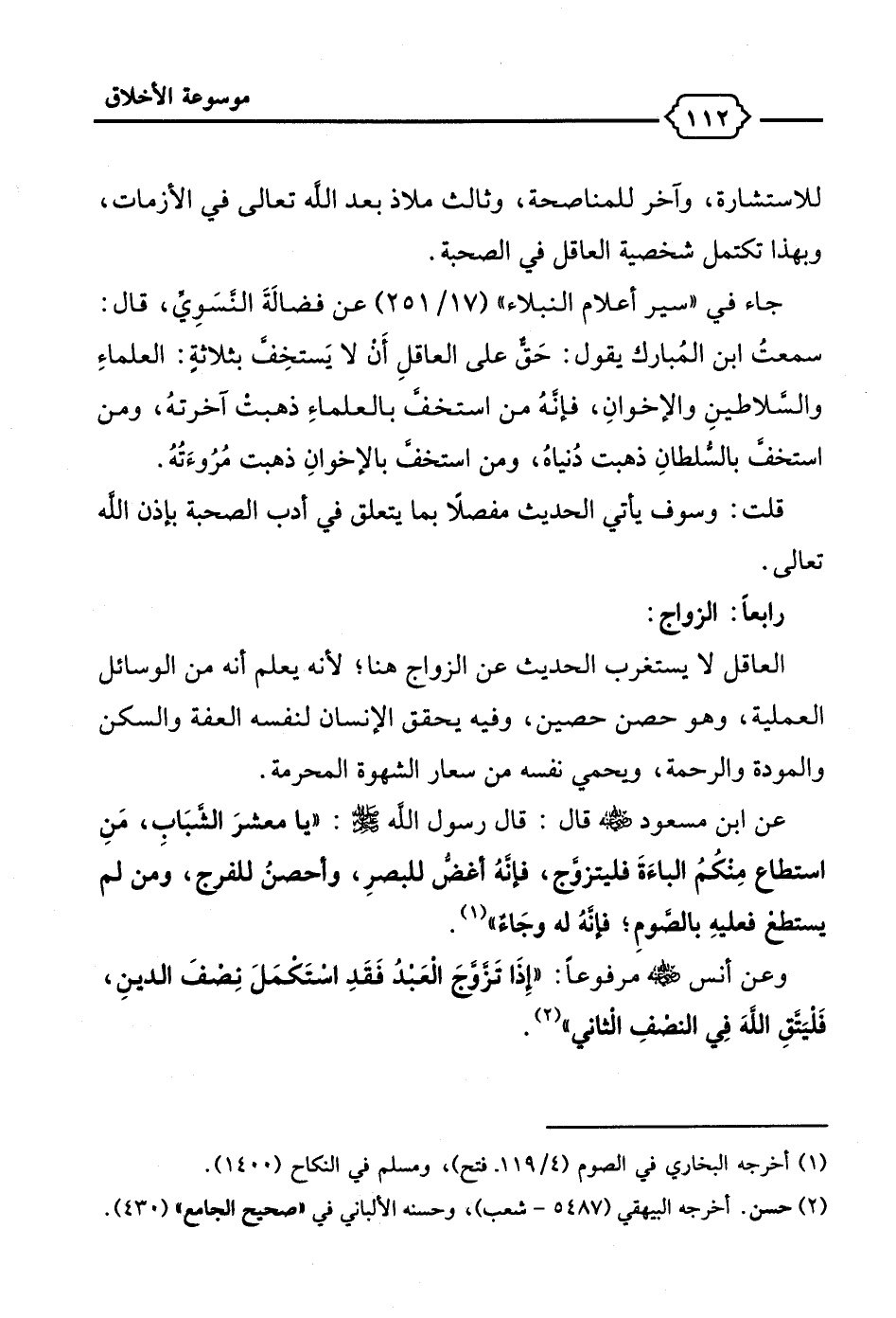 للاستشارة، وآخر للمناصحة، وثالث ملاذ بعد الله تعالى في الأزمات، وبهذا تكتمل شخصية العاقل في الصحبة.
