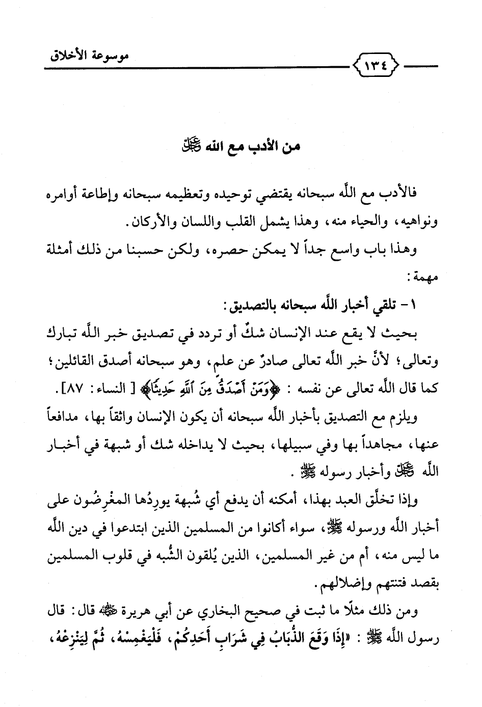 1 - تلقي أخبار الله سبحانه بالتصديق: