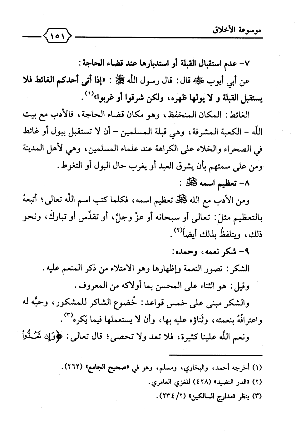 7 - عدم استقبال القبلة أو استدبارها عند قضاء الحاجة: