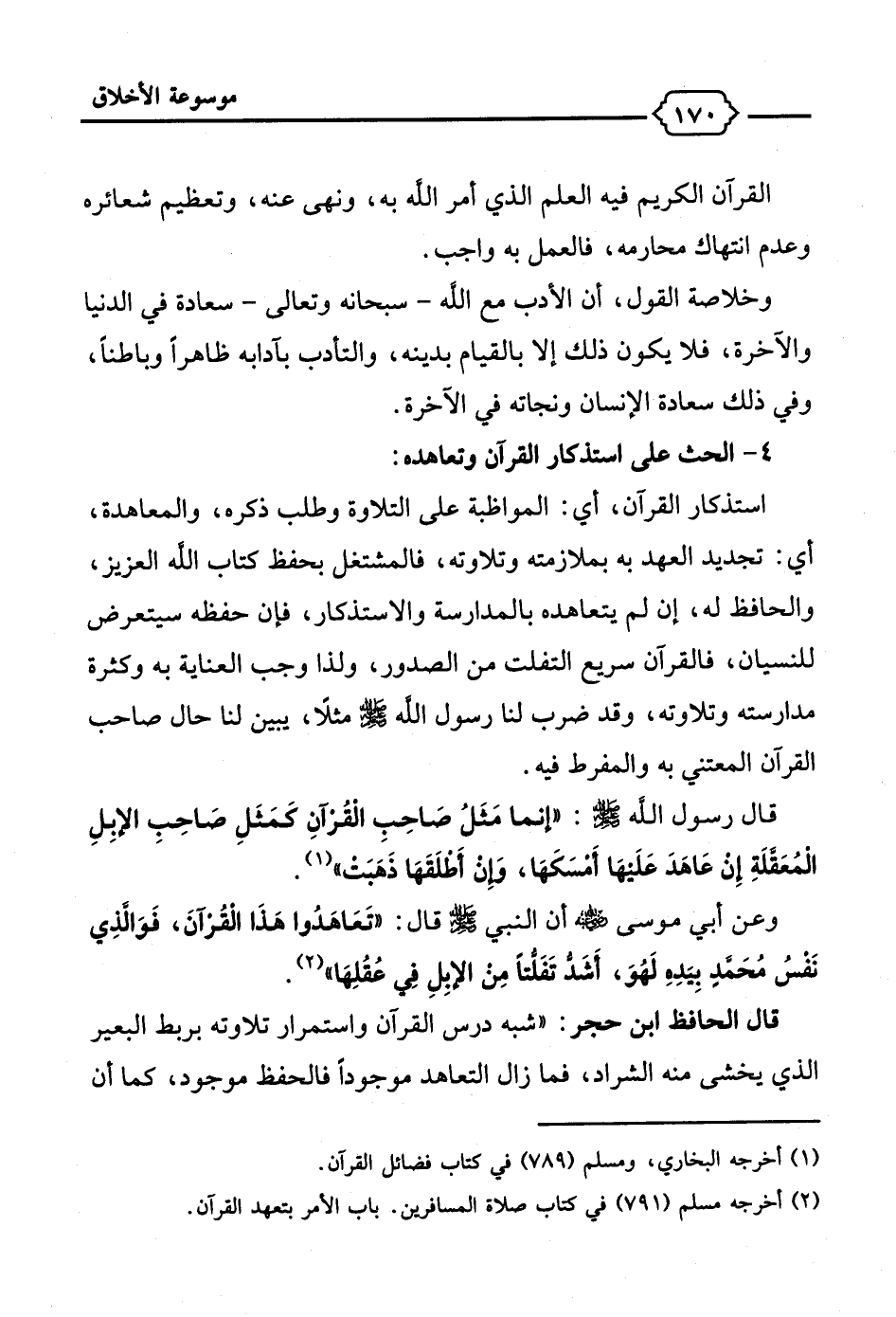 (¬2) أخرجه مسلم (791) في كتاب صلاة المسافرين. باب الأمر بتعهد القرآن.