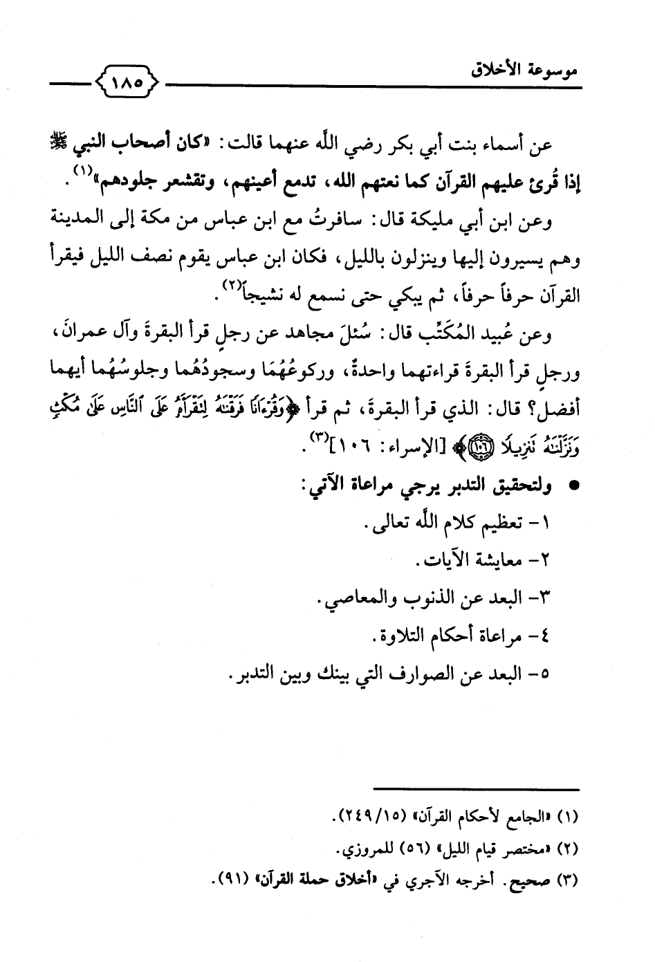 * ولتحقيق التدبر يرجي مراعاة الآتي: