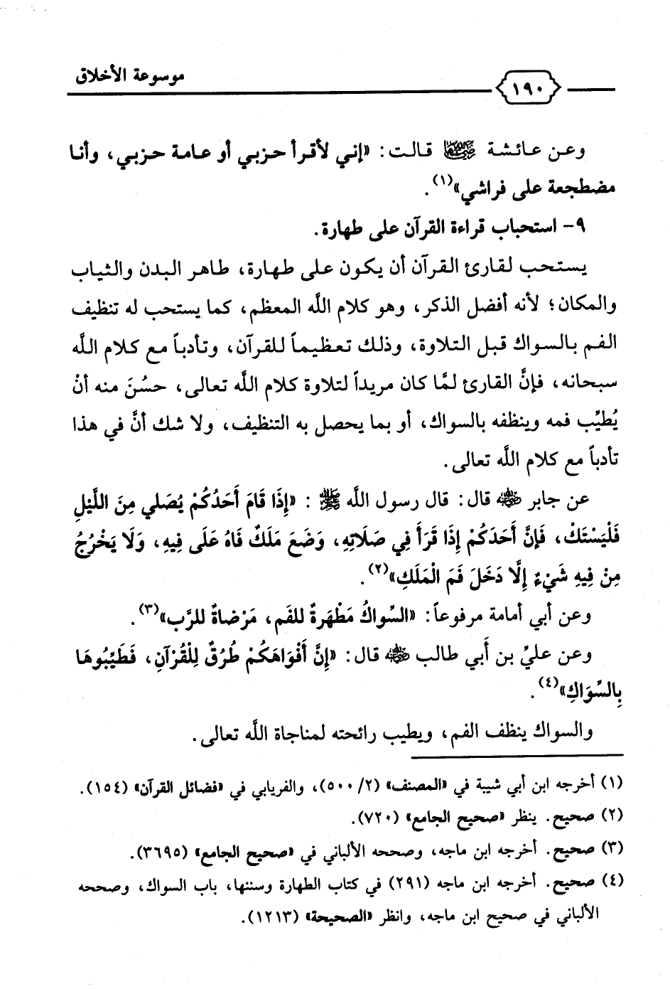 9 - استحباب قراءة القرآن على طهارة.