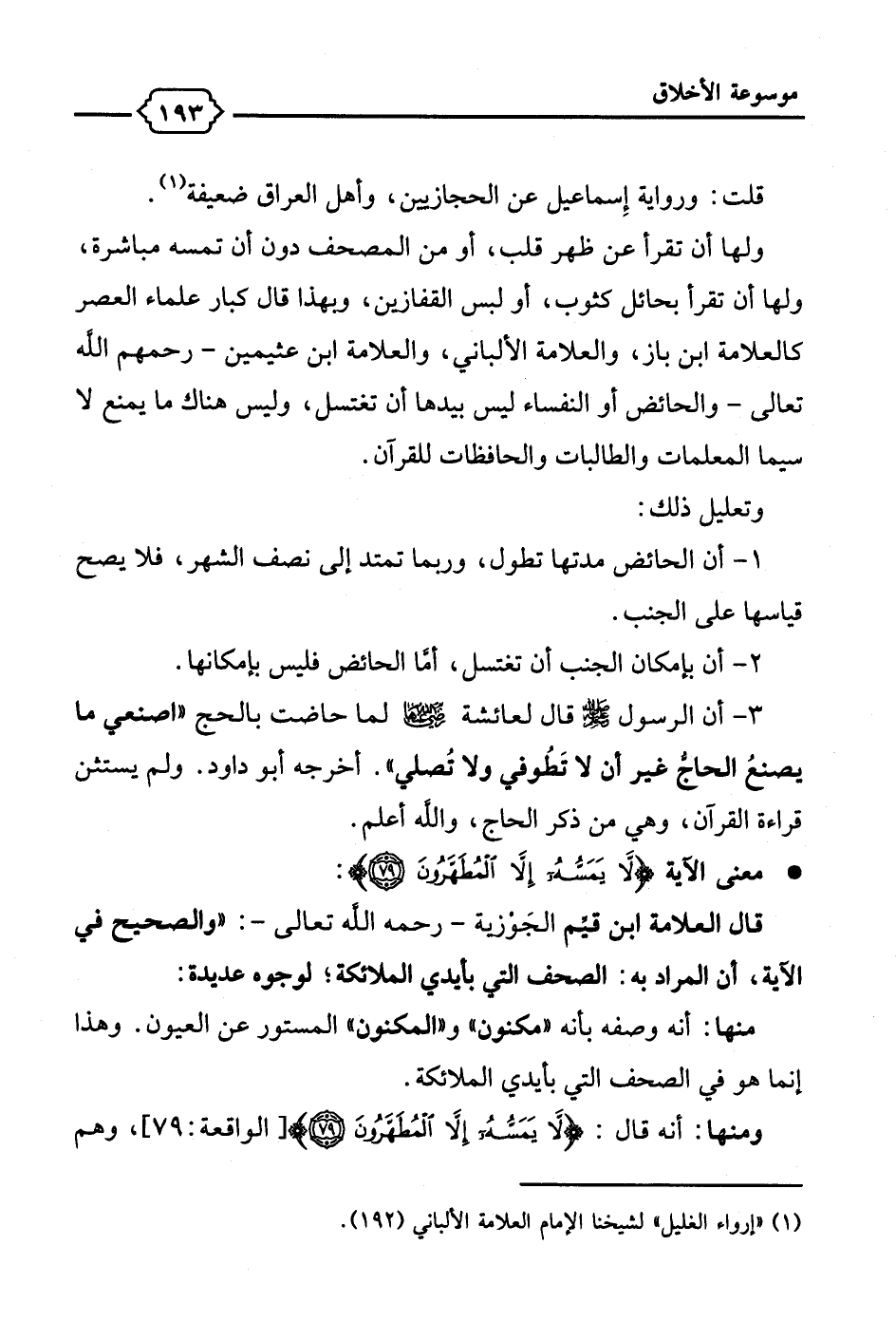 (¬1) "إرواء الغليل" لشيخنا الإمام العلامة الألباني (192).