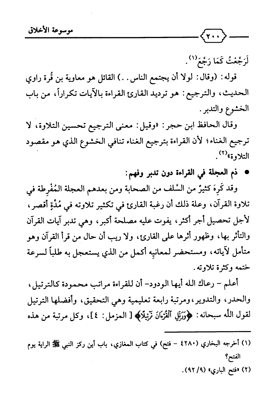 * ذم العجلة في القراءة دون تدبر وفهم: