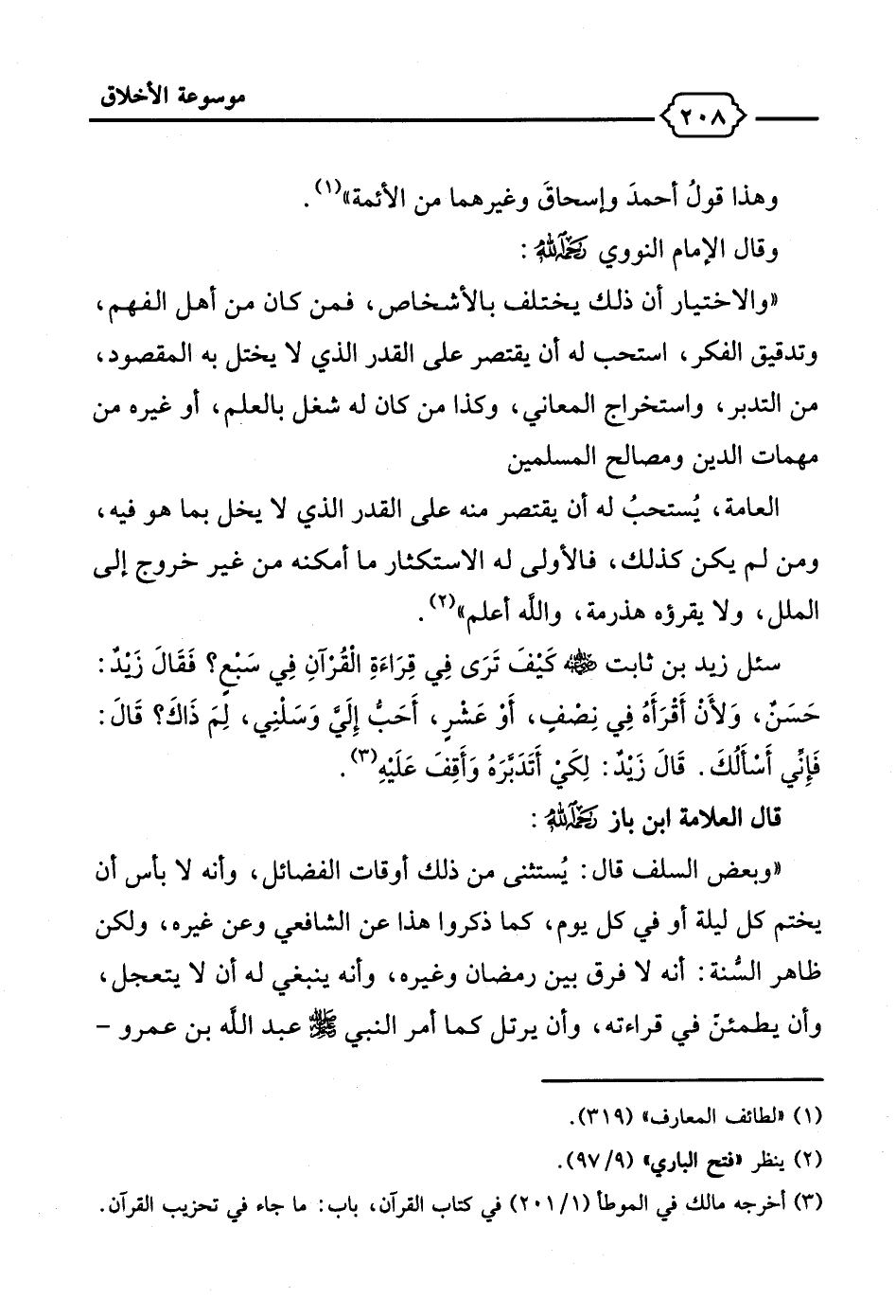 (¬3) أخرجه مالك في الموطأ (1/ 201) في كتاب القرآن، باب: ما جاء في تحزيب القرآن.