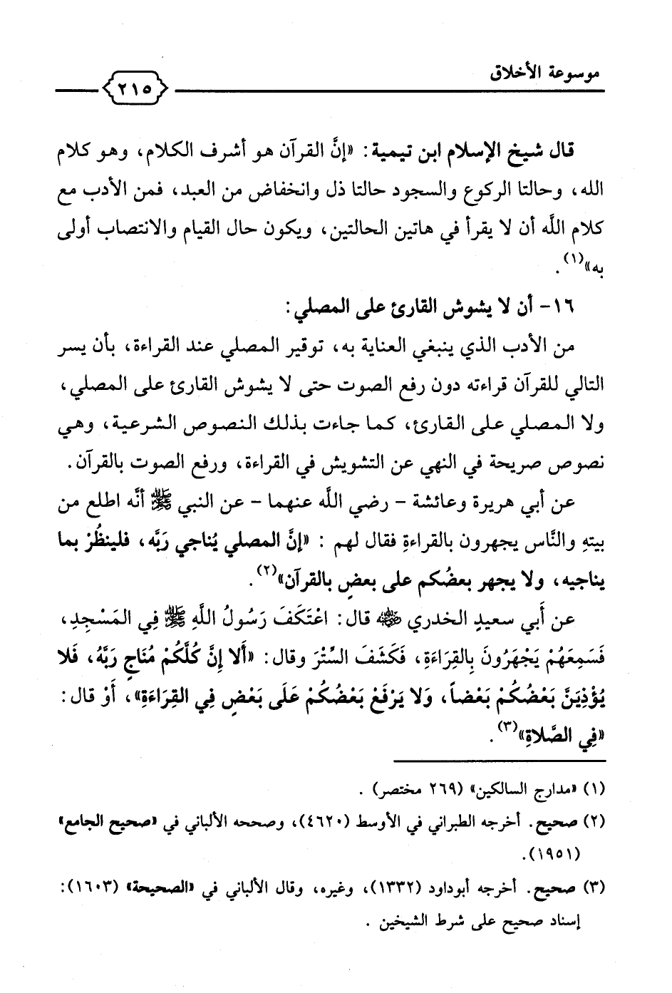 16 - أن لا يشوش القارئ على المصلي: