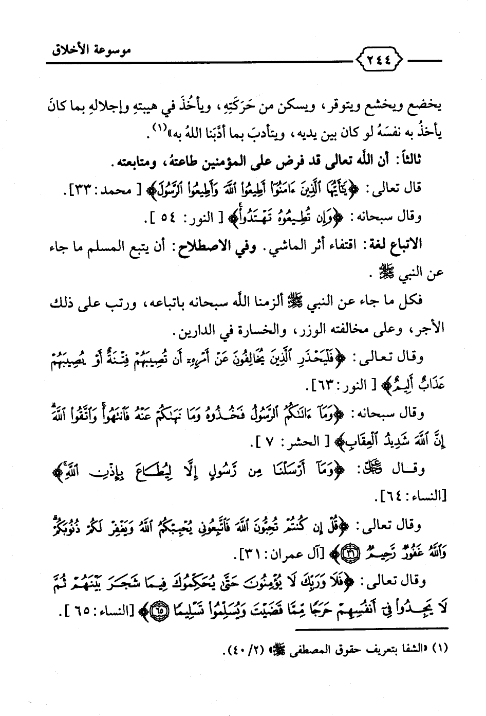(¬1) "الشفا بتعريف حقوق المصطفى - صلى الله عليه وسلم -" (2/ 40).