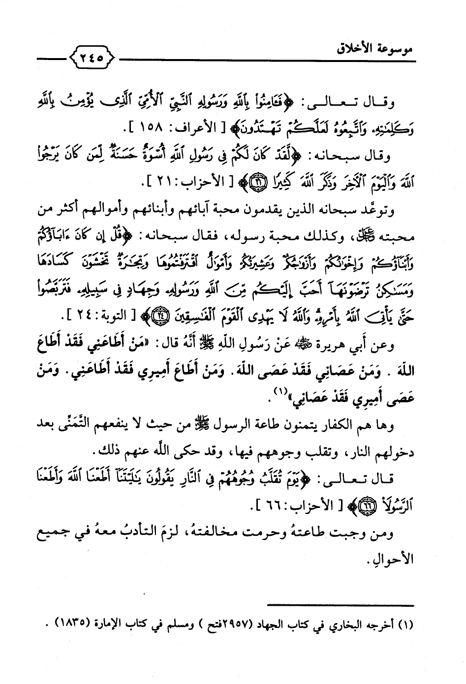 وقال سبحانه: {لَقَدْ كَانَ لَكُمْ فِي رَسُولِ اللَّهِ أُسْوَةٌ حَسَنَةٌ لِمَنْ كَانَ يَرْجُو اللَّهَ وَالْيَوْمَ الْآخِرَ وَذَكَرَ اللَّهَ كَثِيرًا (21)} [الأحزاب: 21].