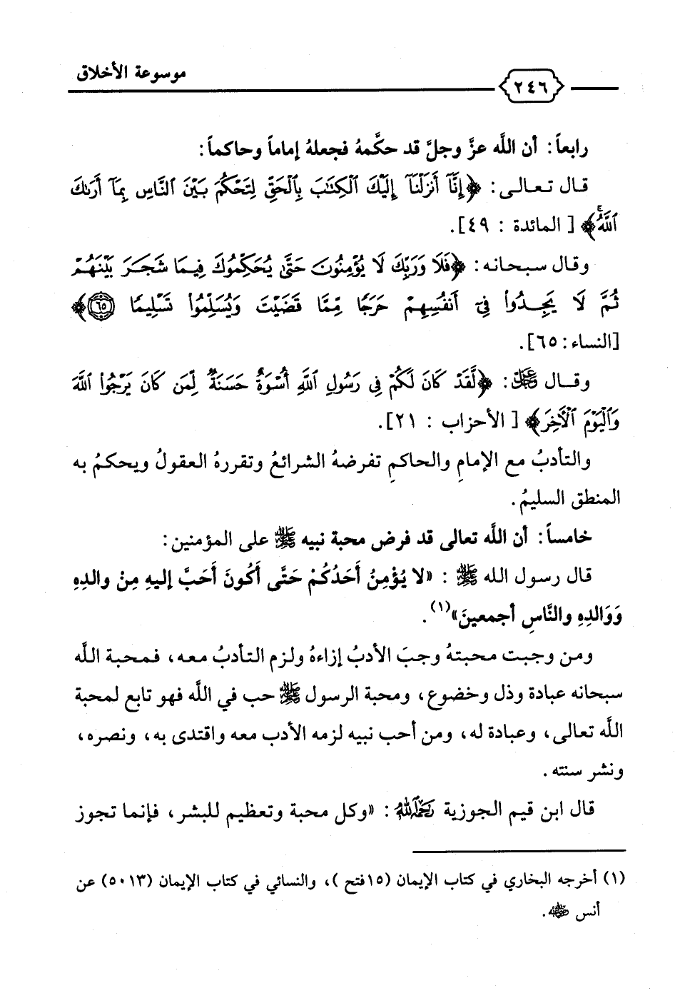قال رسول الله - صلى الله عليه وسلم -: "لا يُؤمِنُ أَحَدُكم حَتَّى أكُونَ أحب إليهِ من والدهِ وَوَالده والنَّاسِ أجمعينَ" (¬1).