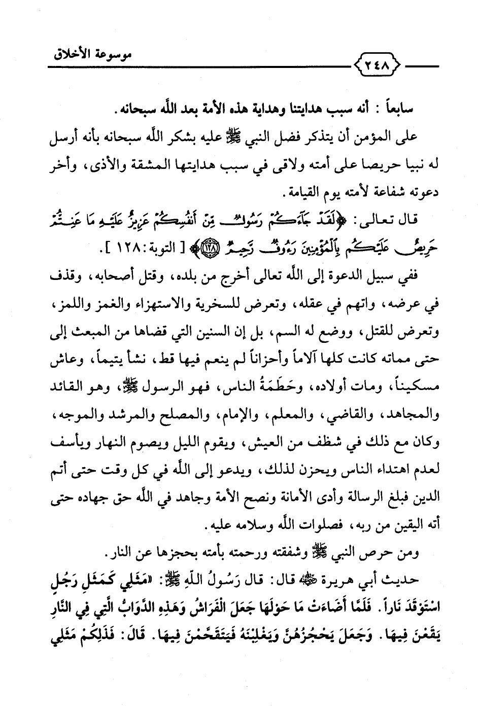 قال تعالى: {لَقَدْ جَاءَكُمْ رَسُولٌ مِنْ أَنْفُسِكُمْ عَزِيزٌ عَلَيْهِ مَا عَنِتُّمْ حَرِيصٌ عَلَيْكُمْ بِالْمُؤْمِنِينَ رَءُوفٌ رَحِيمٌ (128)} [التوبة: 128].