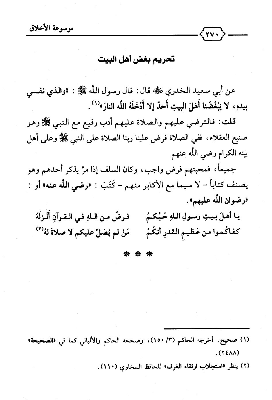 كفاكُموا من عَظيمِ القدرِ أنكُمُ ... مَن لم يُصَلِّ عليكم لا صلاةَ لهُ (¬2)