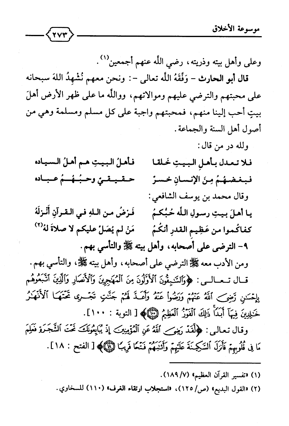 9 - الترضي على أصحابه، وأهل بيته - صلى الله عليه وسلم - والتأسي بهم.