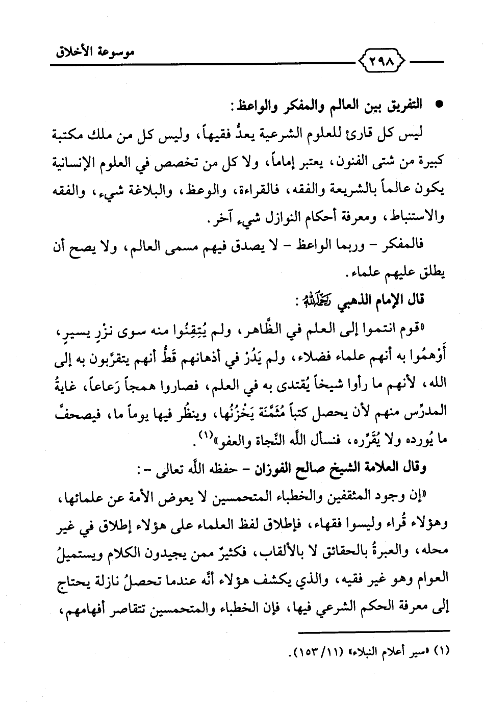 ليس كل قارئ للعلوم الشرعية يعد فقيهًا، وليس كل من ملك مكتبة كبيرة من شتى الفنون، يعتبر إمامًا، ولا كل من تخصص في العلوم الإنسانية يكون عالمًا بالشريعة والفقه، فالقراءة، والوعظ، والبلاغة شيء، والفقه والاستنباط، ومعرفة أحكام النوازل شيء آخر.