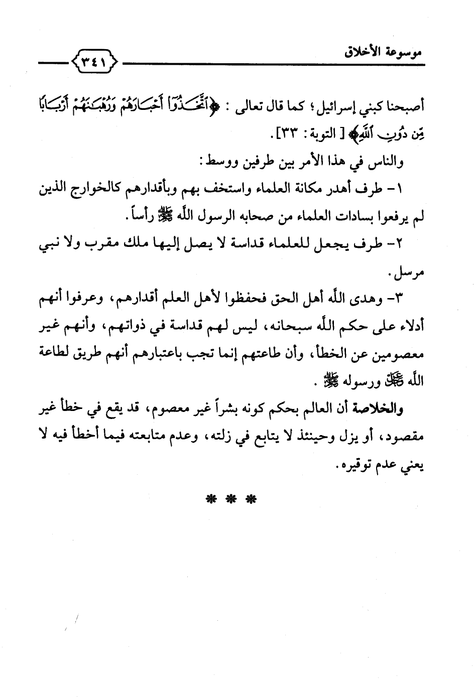 2 - طرف يجعل للعلماء قداسة لا يصل إليها ملك مقرب ولا نبي مرسل.