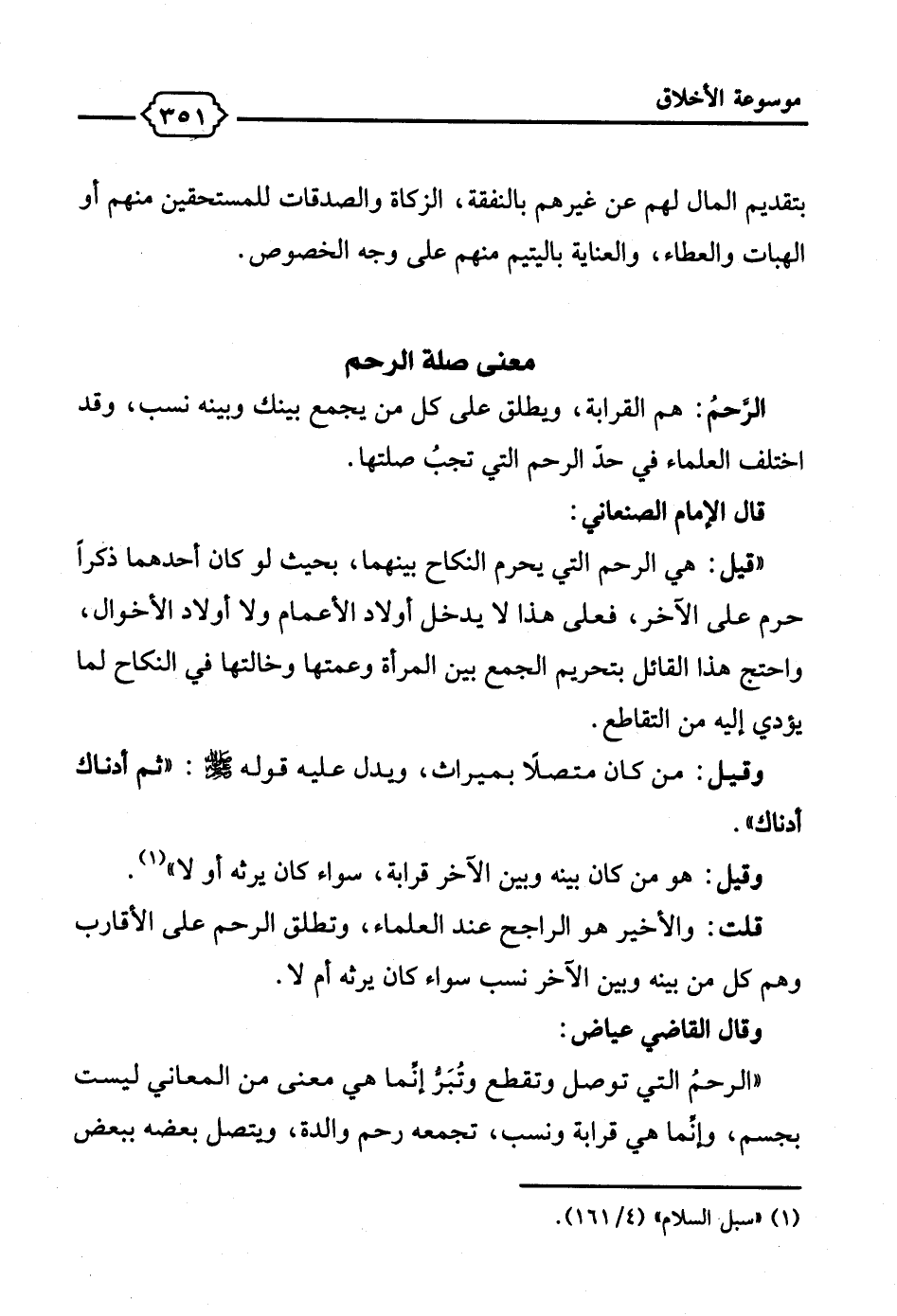 "الرحمُ التي توصل وتقطع وتُبَرُّ إنَّما هي معنى من المعاني ليست بجسم، وإنَّما هي قرابة ونسب، تجمعه رحم والدة، ويتصل بعضه ببعض