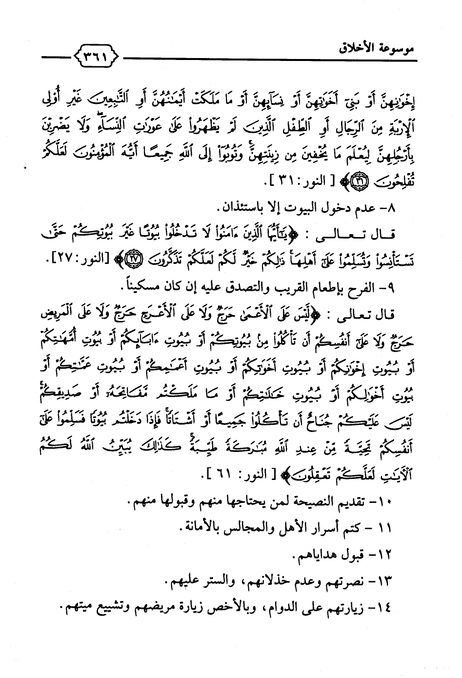 8 - عدم دخول البيوت إلا باستئذان.