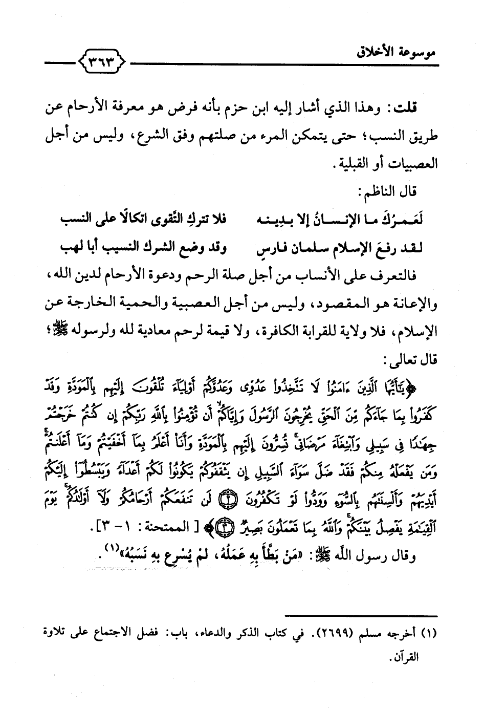 لقد رفعَ الإسلام سلمان فارسٍ ... وقد وضع الشرك النسيب أبا لهب