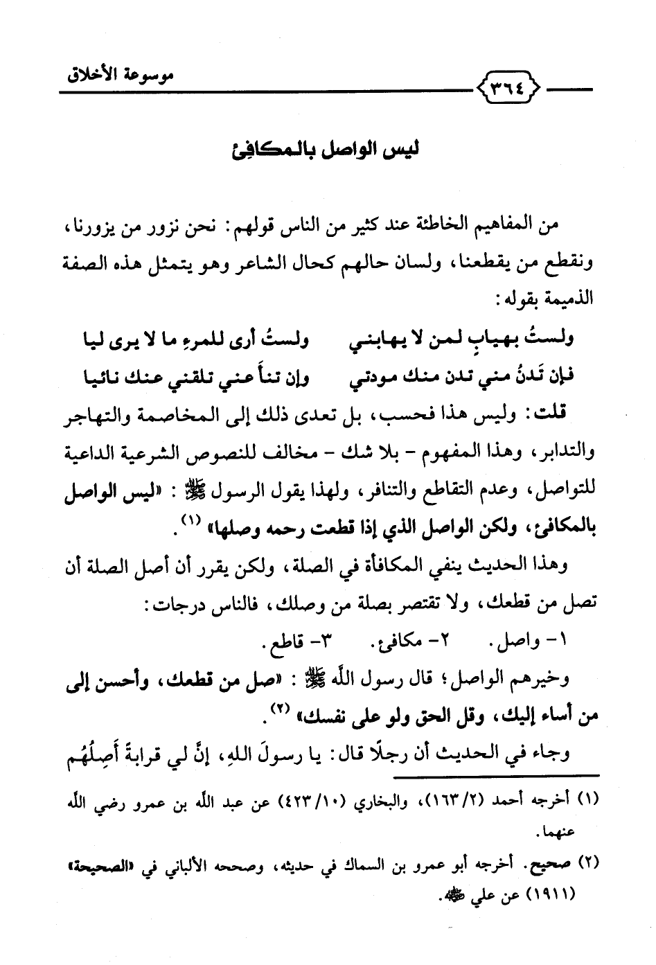 من المفاهيم الخاطئة عند كثير من الناس قولهم: نحن نزور من يزورنا، ونقطع من يقطعنا، ولسان حالهم كحال الشاعر وهو يتمثل هذه الصفة الذميمة بقوله: