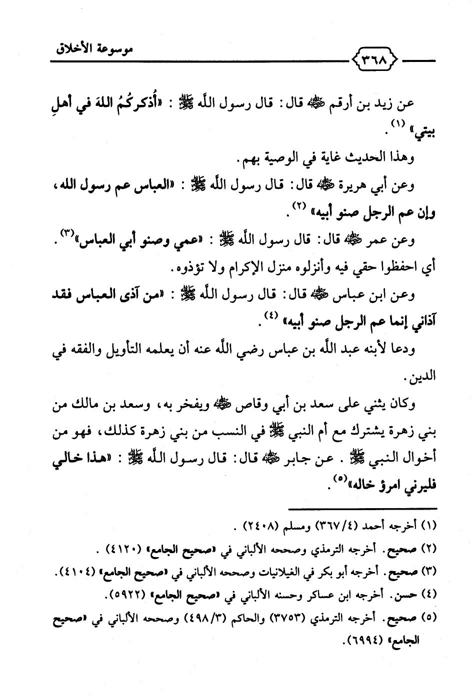 وعن عمر - رضي الله عنه - قال: قال رسول الله - صلى الله عليه وسلم -: "عمي وصنو أبي العباس" (¬3). أي احفظوا حقي فيه وأنزلوه منزل الإكرام ولا تؤذوه.