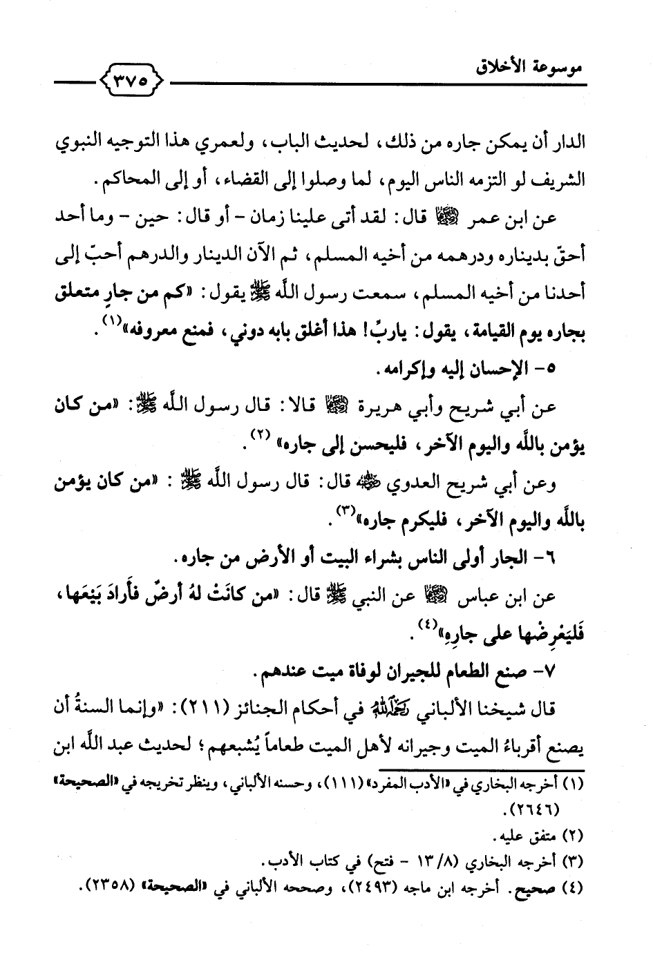 عن أبي شريح وأبي هريرة - رضي الله عنه - قالا: قال رسول الله - صلى الله عليه وسلم -: "من كان يؤمن بالله واليوم الآخر، فليحسن إلى جاره" (¬2).