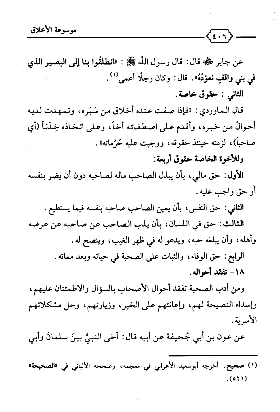 قال الماوردي: "فإذا صفت عنده أخلاق من سَبَره، وتمهدت لديه أحوالُ من خبره، وأقدم على اصطفائه أخًا، وعلى اتخاذه خِدْنًا (أي صاحبًا)، لزمته حينئذ حقوقه، ووجبت عليه حُرُماته".