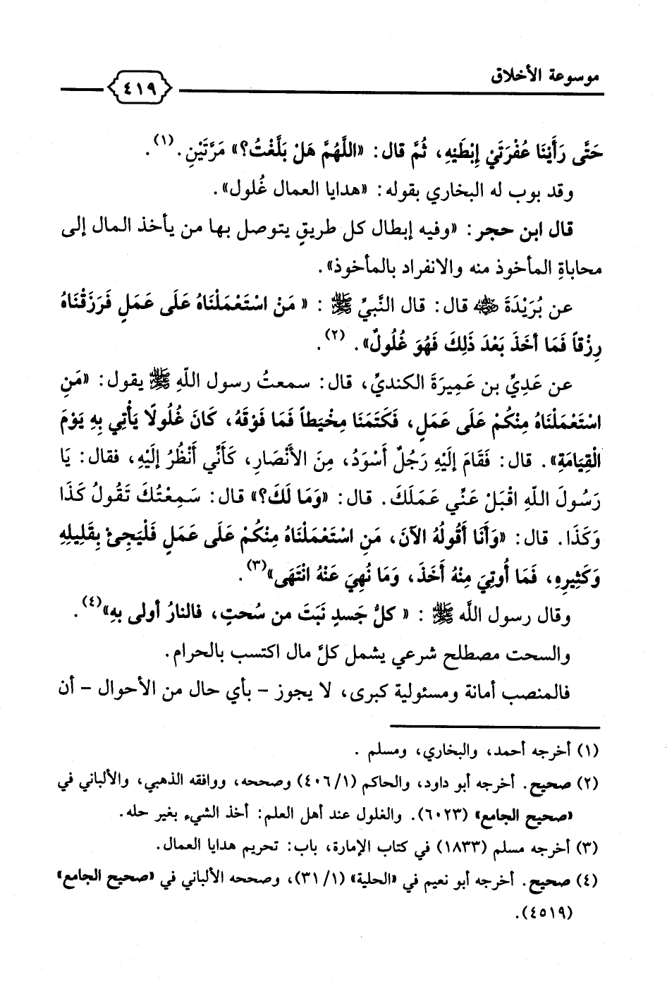 عن بُرَيدَةَ - رضي الله عنه - قال: قال النَّبيّ - صلى الله عليه وسلم -: "مَن استعمَلنَاهُ عَلَى عَمَلٍ فَرَزَقنَاهُ رِزقاً فما أخَذَ بَعدَ ذلِكَ فَهُوَ غلُولٌ". (¬2).