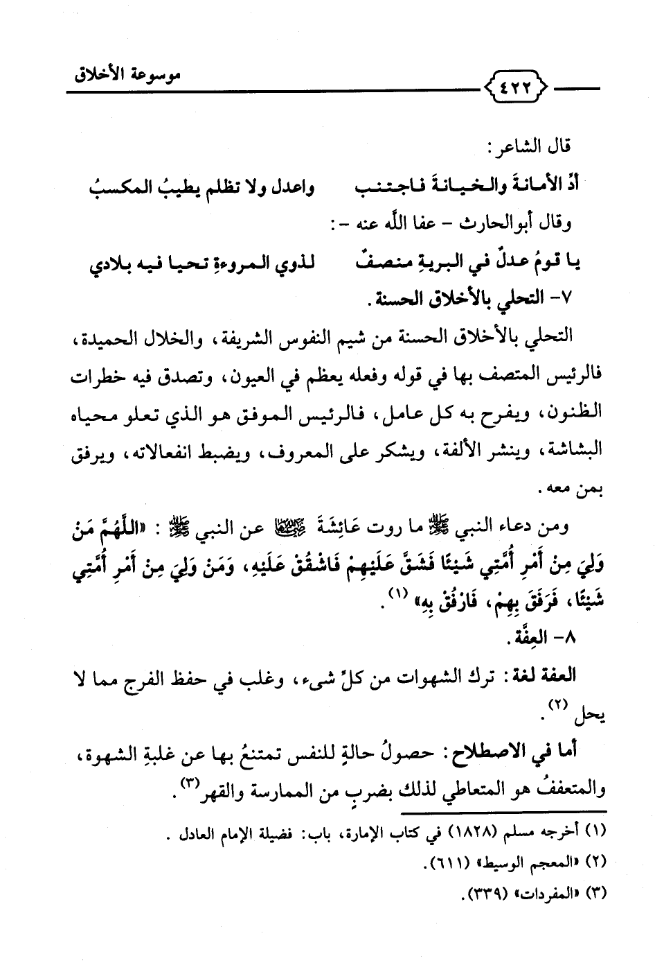 العفة لغة: ترك الشهوات من كلَّ شيء، وغلب في حفظ الفرج مما لا يحل (¬2).
