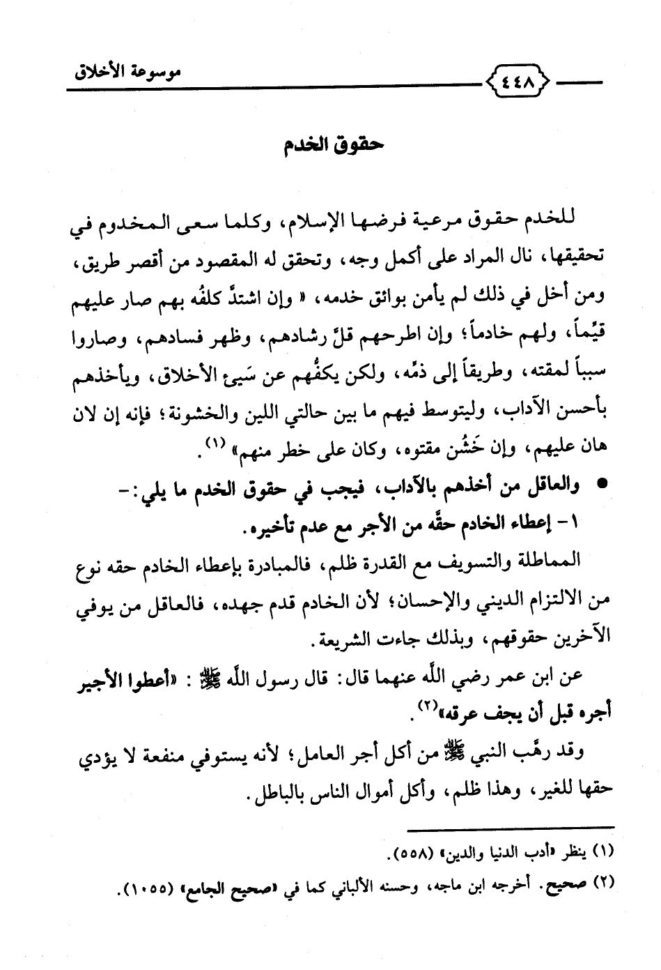 1 - إعطاء الخادم حقَّه من الأجر مع عدم تأخيره.