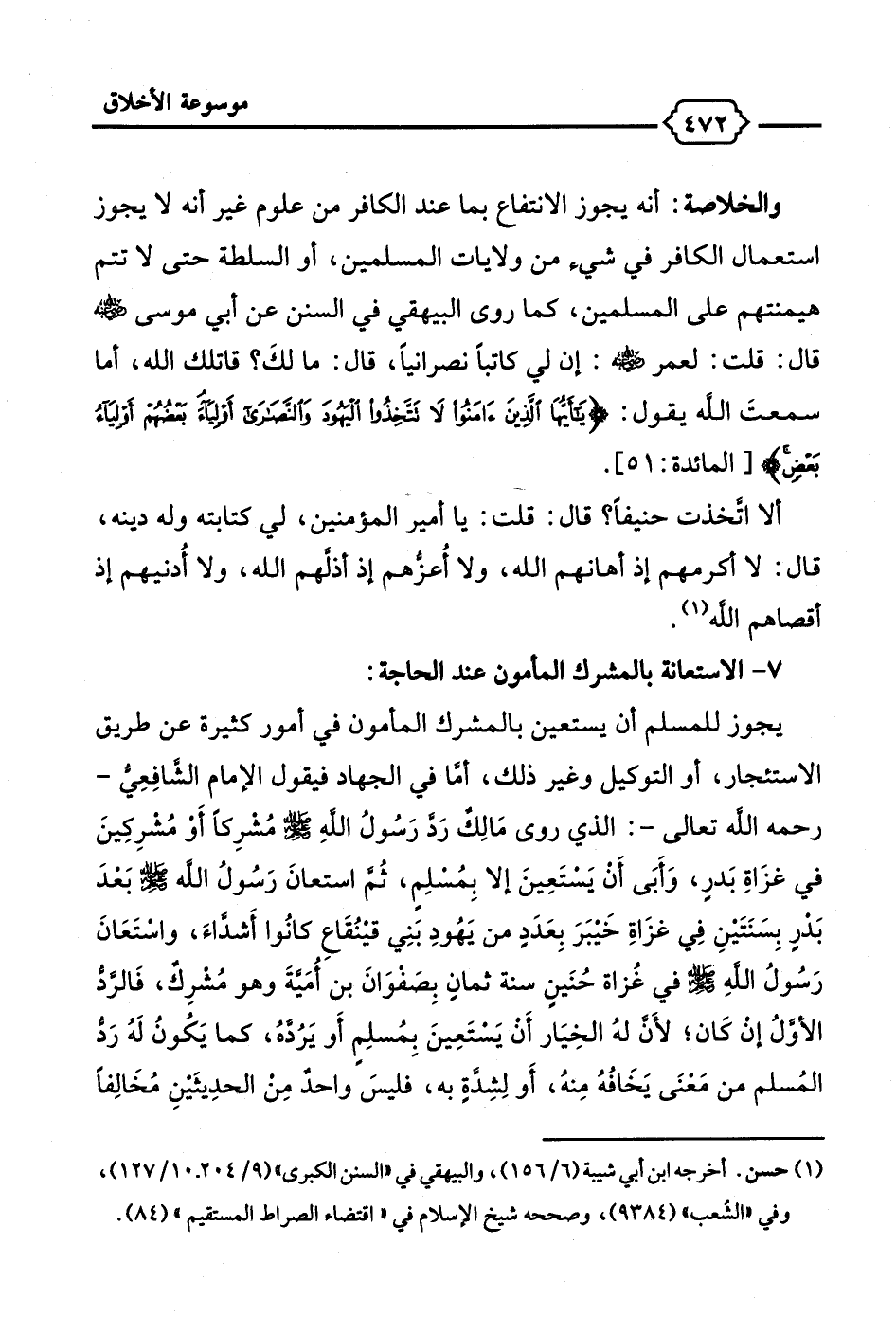 (¬1) حسن. أخرجه ابن أبي شيبة (6/ 156)، والبيهقي في "السنن الكبرى" (9/ 204 - 10/ 127)، وفي "الشُّعب" (9384)، رصححه شيخ الإسلام في "اقتضاء الصراط المستقيم" (84).