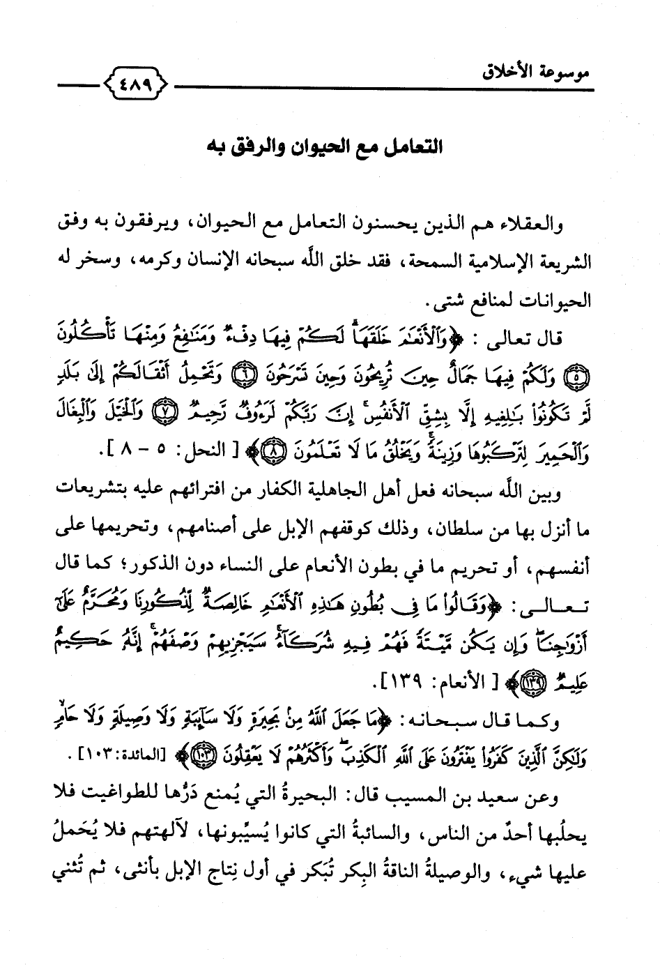 قال تعالى: {وَالْأَنْعَامَ خَلَقَهَا لَكُمْ فِيهَا دِفْءٌ وَمَنَافِعُ وَمِنْهَا تَأْكُلُونَ (5) وَلَكُمْ فِيهَا جَمَالٌ حِينَ تُرِيحُونَ وَحِينَ تَسْرَحُونَ (6) وَتَحْمِلُ أَثْقَالَكُمْ إِلَى بَلَدٍ لَمْ تَكُونُوا بَالِغِيهِ إِلَّا بِشِقِّ الْأَنْفُسِ إِنَّ رَبَّكُمْ لَرَءُوفٌ رَحِيمٌ (7) وَالْخَيْلَ وَالْبِغَالَ وَالْحَمِيرَ لِتَرْكَبُوهَا وَزِينَةً وَيَخْلُقُ مَا لَا تَعْلَمُونَ (8)} [النحل: 8].