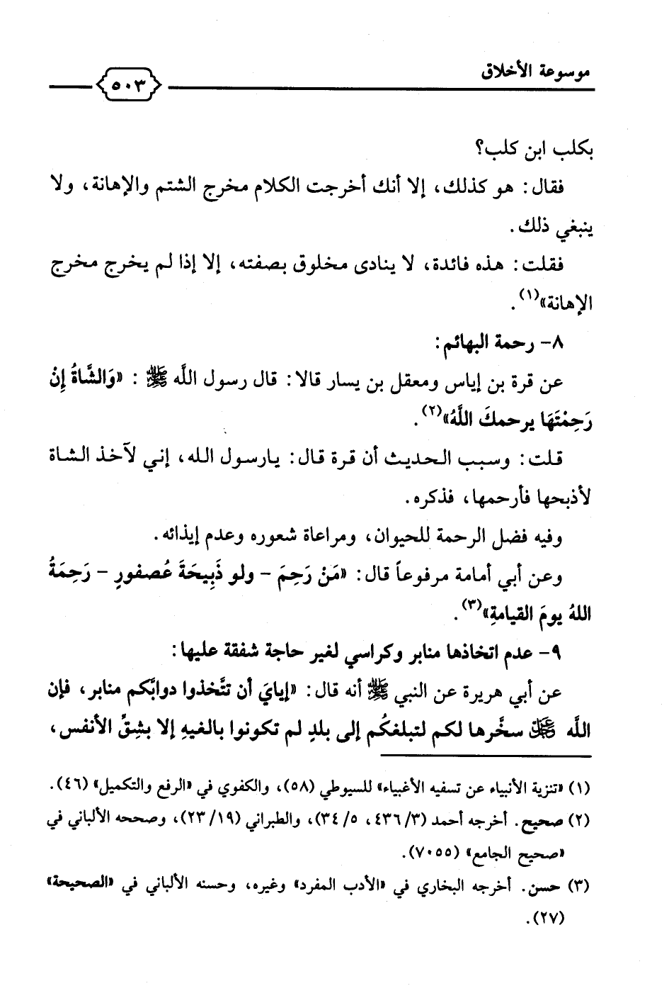 عن قرة بن إياس ومعقل بن يسار قالا: قال رسول الله - صلى الله عليه وسلم -: "وَالشَّاةُ إِن رَحِمْتَهَا يرحمكَ الله" (¬2).