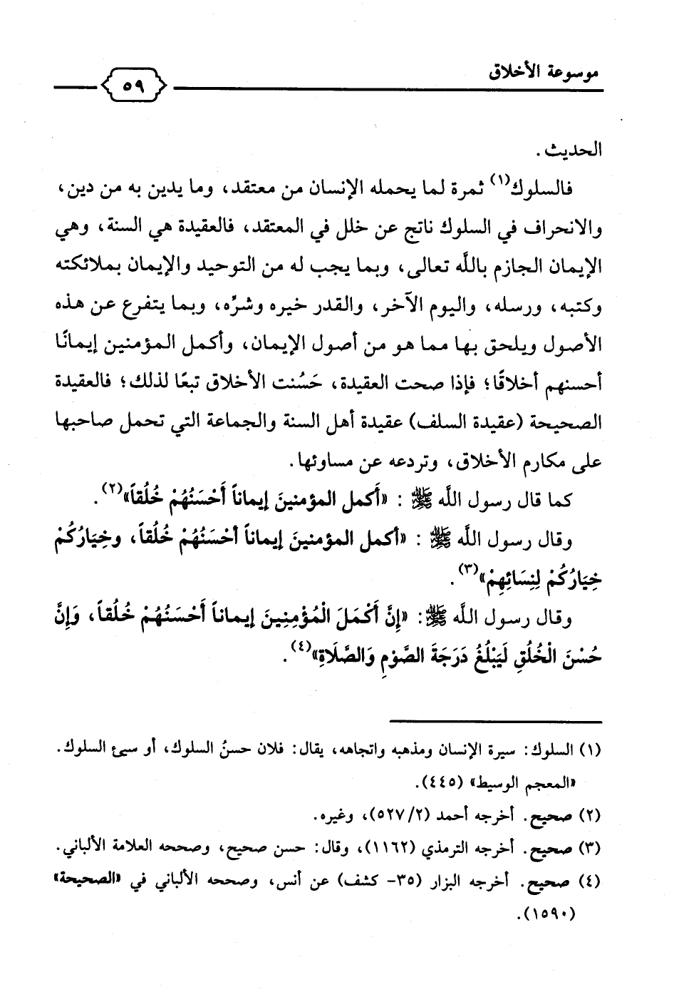 كما قال رسول الله - صلى الله عليه وسلم -: "أكَمل المؤمنينَ إِيماناً أَحسَنُهُم خُلُقاً" (¬2).