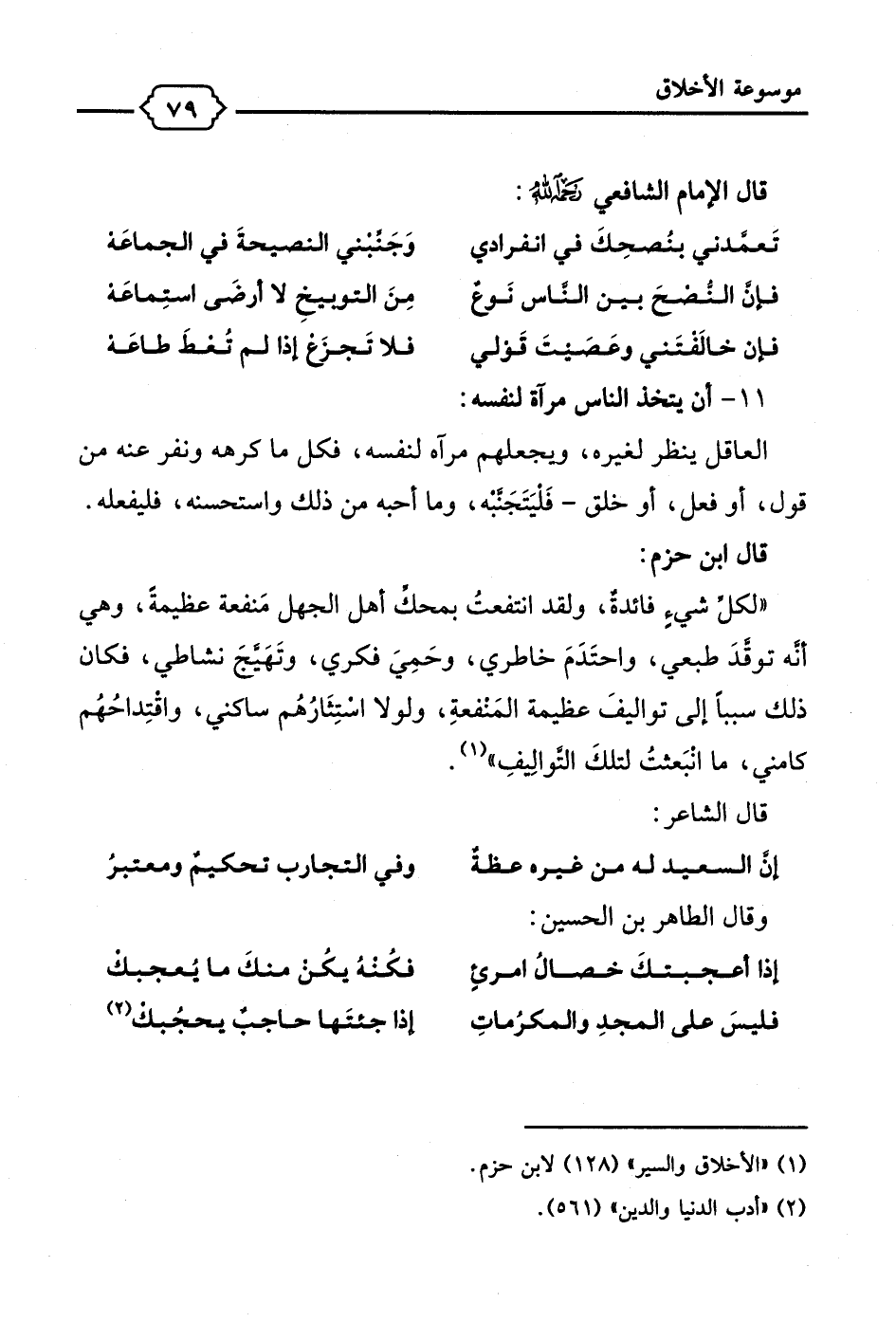 (¬1) "الأخلاق والسير" (128) لابن حزم.