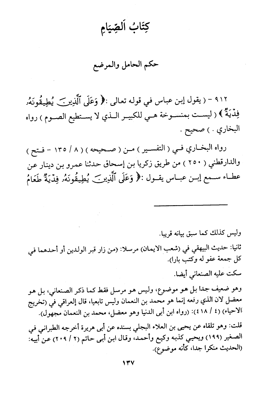 912 - (يقول إبن عباس في قوله تعالى: {وَعَلَى الَّذِينَ يُطِيقُونَهُ فِدْيَةٌ}