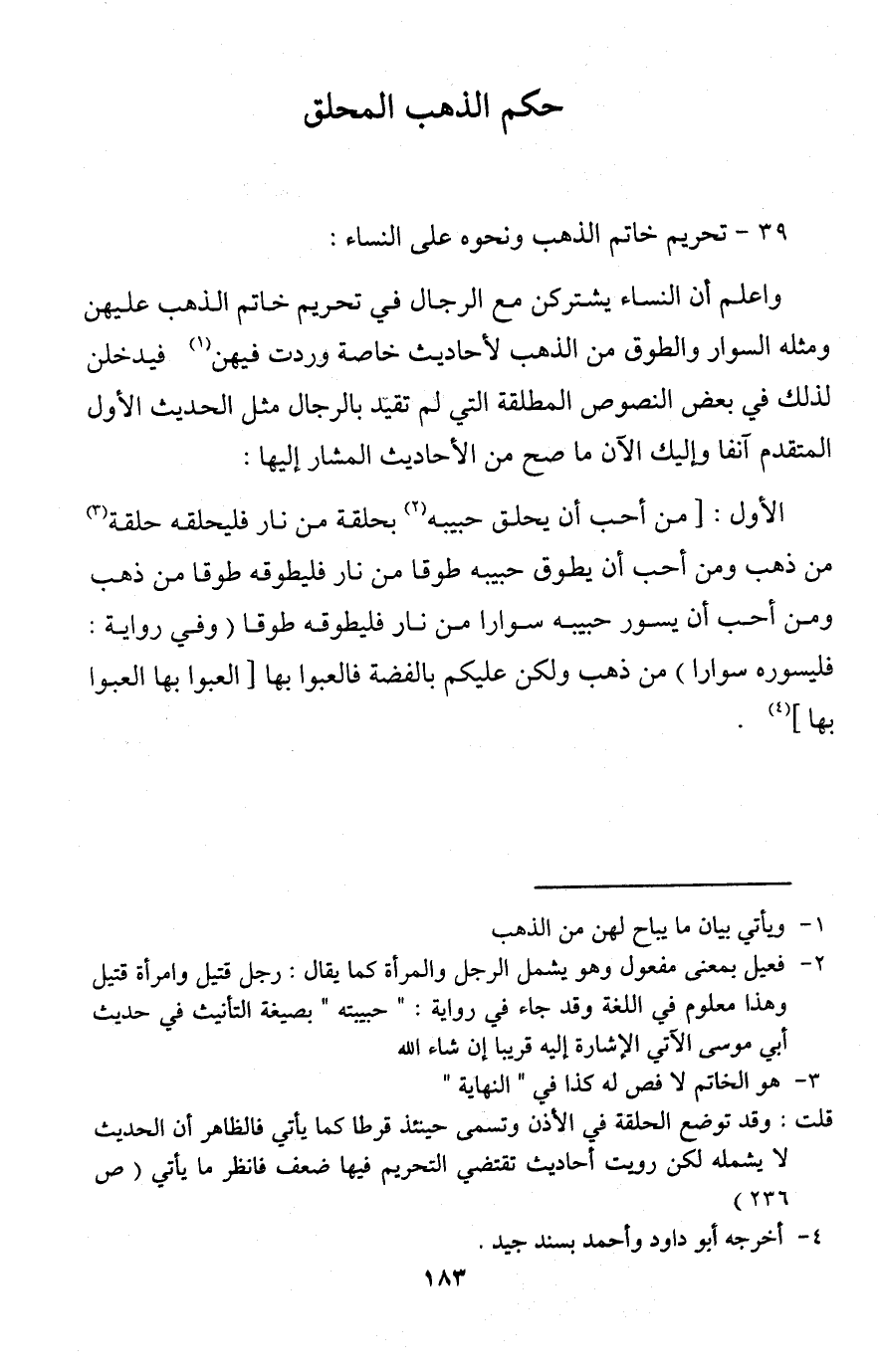 39 - تحريم خاتم الذهب ونحوه على النساء: