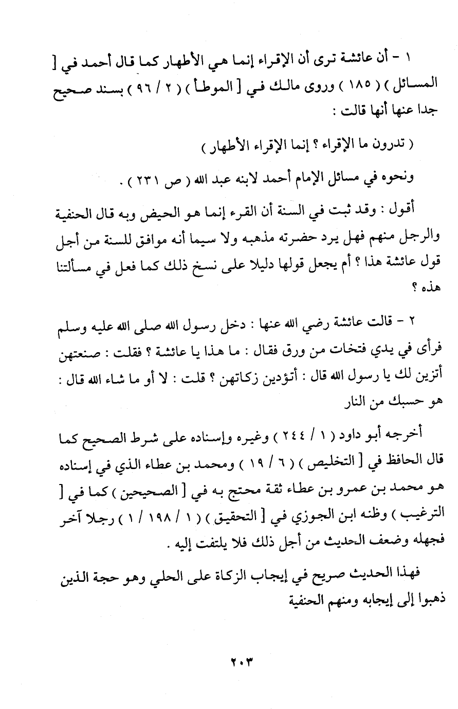 1 - أن عائشة ترى أن الإقراء إنما هي الأطهار كما قال أحمد في [المسائل) (185) وروى مالك في [الموطأ) (2/ 96) بسند صحيح جدا عنها أنها قالت: