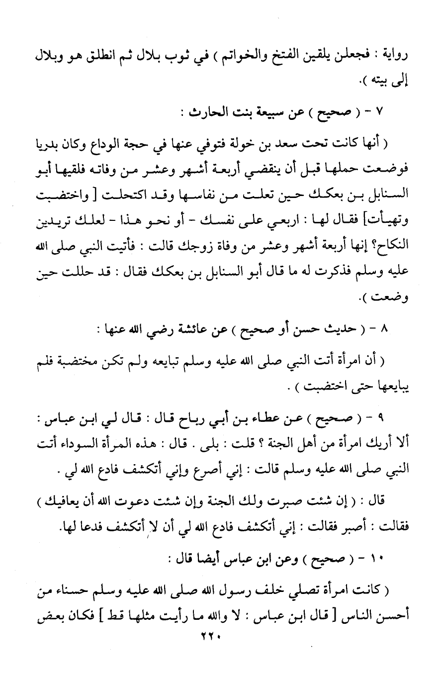 7 - (صحيح) عن سبيعة بنت الحارث: