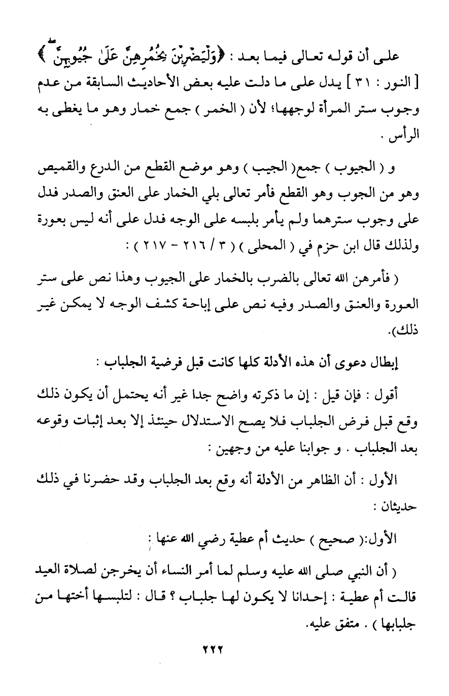 أقول: فإن قيل: إن ما ذكرته واضح جدا غير أنه يحتمل أن يكون ذلك وقع قبل فرض الجلباب فلا يصح الاستدلال حينئذ إلا بعد إثبات وقوعه بعد الجلباب. وجوابنا عليه من وجهين: