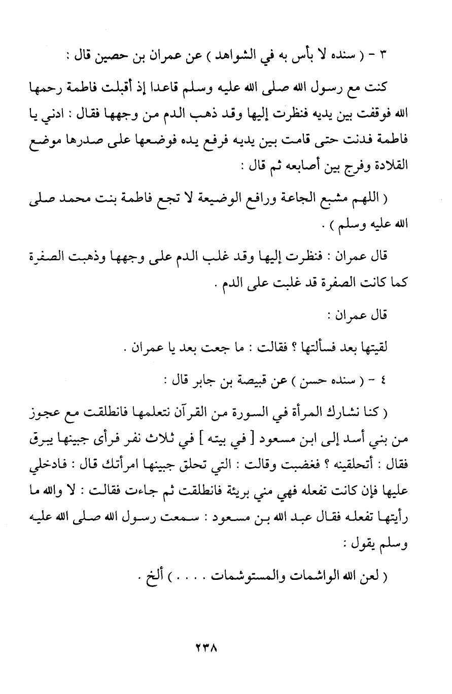 3 - (سنده لا بأس به في الشواهد) عن عمران بن حصين قال: