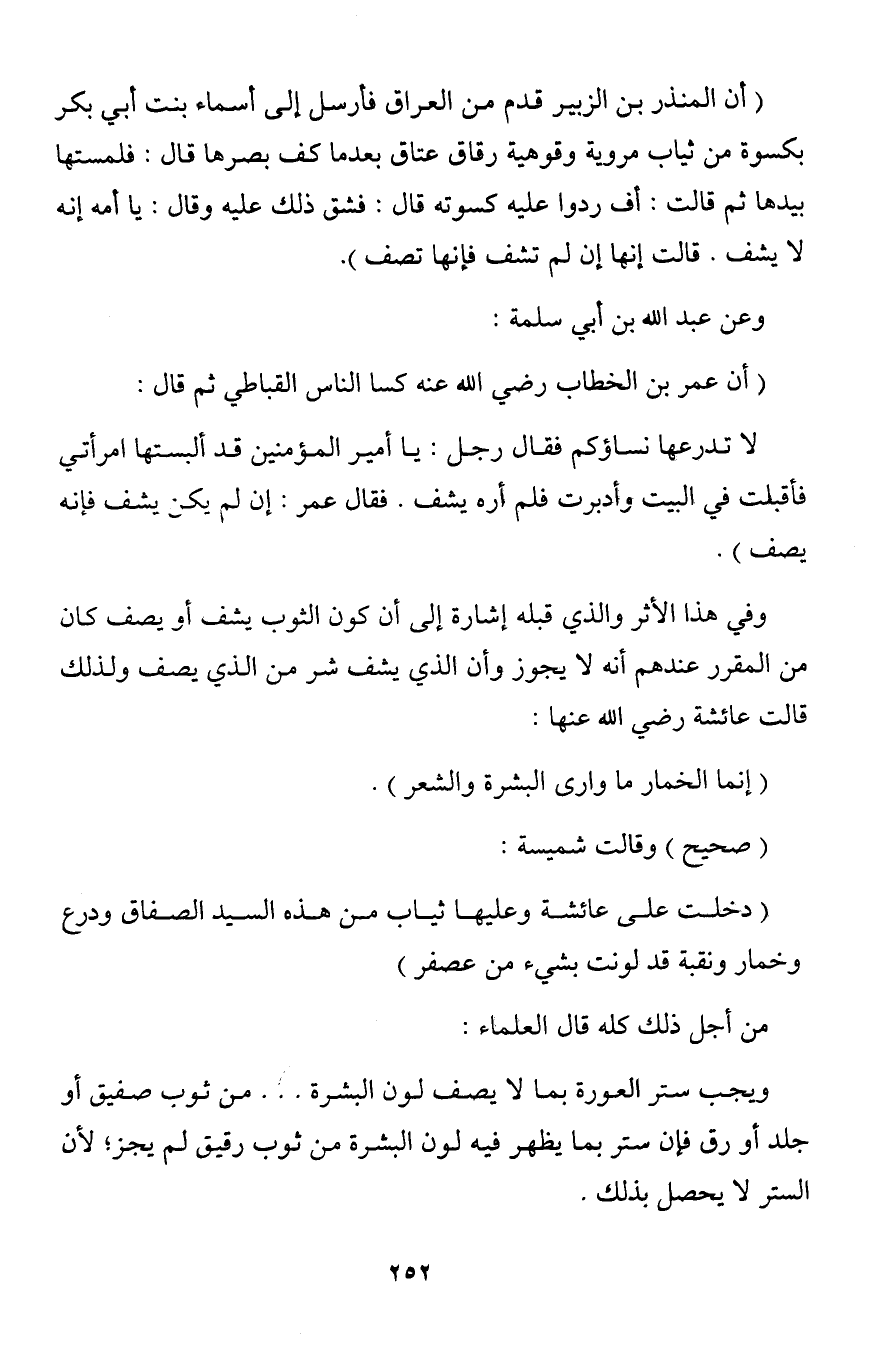 لا تدرعها نساؤكم فقال رجل: يا أمير المؤمنين قد ألبستها امرأتي فأقبلت في البيت وأدبرت فلم أره يشف. فقال عمر: إن لم يكن يشف فإنه يصف).