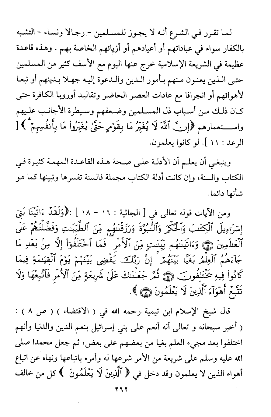 قال شيخ الإسلام ابن تيمية رحمه الله في (الاقتضاء) (ص 8):