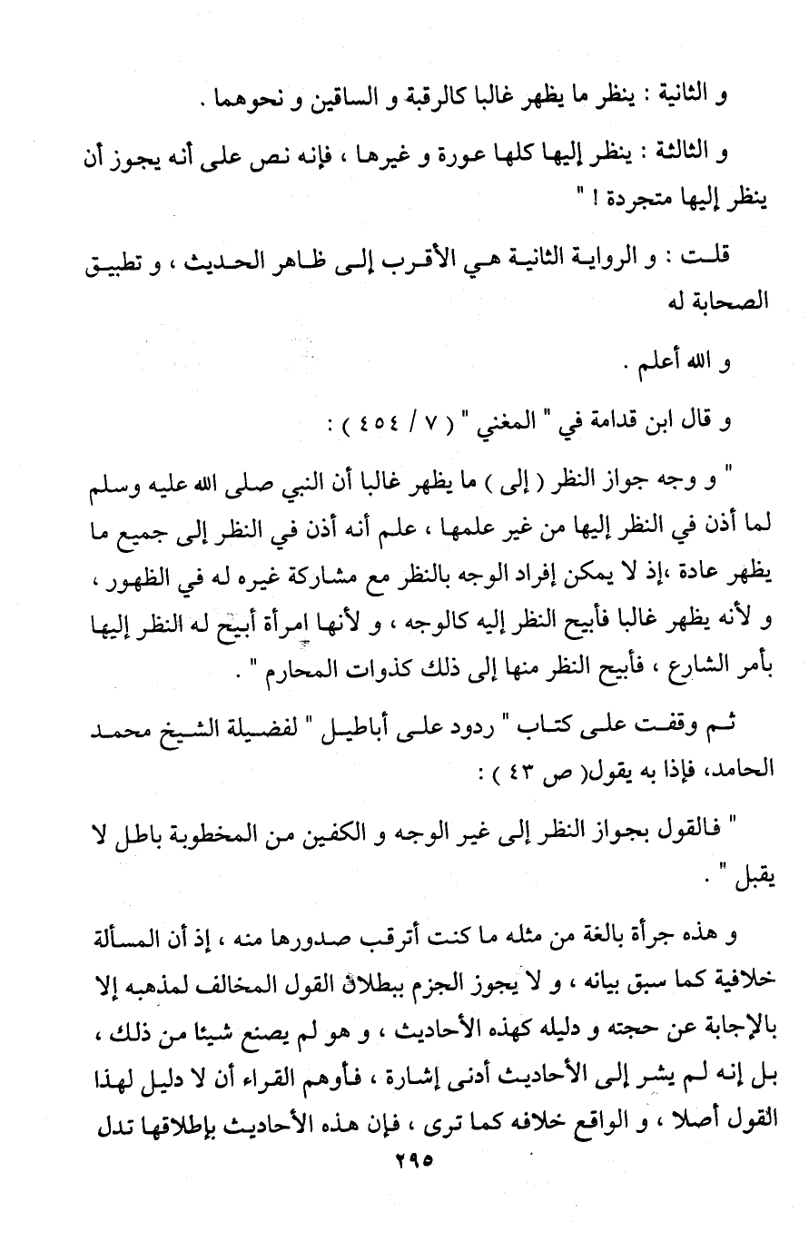 وهذه جرأة بالغة من مثله ما كنت أترقب صدورها منه، إذ أن المسألة خلافية كما سبق بيانه، ولا يجوز الجزم ببطلان القول المخالف لمذهبه إلا بالإجابة عن حجته ودليله كهذه الأحاديث، وهو لم يصنع شيئا من ذلك، بل إنه لم يشر إلى الأحاديث أدنى إشارة، فأوهم القراء أن لا دليل لهذا القول أصلا، والواقع خلافه كما ترى، فإن هذه الأحاديث بإطلاقها تدل