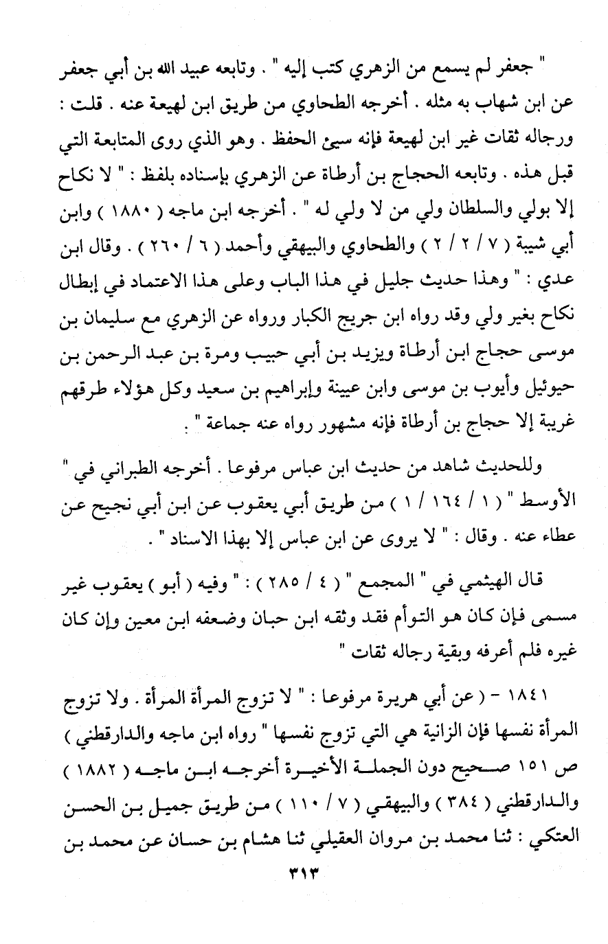 " جعفر لم يسمع من الزهري كتب إليه ". وتابعه عبيد الله بن أبي جعفر عن ابن شهاب به مثله أخرجه الطحاوي من طريق ابن لهيعة عنه. قلت: ورجاله ثقات غير ابن لهيعة فإنه سيئ الحفظ. وهو الذي روى المتابعة التي قبل هذه. وتابعه الحجاج بن أرطاة عن الزهري بإسناده بلفظ: " لا نكاح إلا بولي والسلطان ولي من لا ولي له ". أخرجه ابن ماجه (1880) وابن أبي شيبة (7/ 2 / 2) والطحاوي والبيهقي وأحمد (6/ 260). وقال ابن عدي: " وهذا حديث جليل في هذا الباب وعلى هذا الاعتماد في إبطال نكاح بغير ولي وقد رواه ابن جريج الكبار ورواه عن الزهري مع سليمان بن موسى حجاج ابن أرطاة ويزيد بن أبي حبيب ومرة بن عبد الرحمن بن حيوئيل وأيوب بن موسى وابن عيينة وإبراهيم بن سعيد وكل هؤلاء طرقهم غريبة إلا حجاج بن أرطاة فإنه مشهور رواه عنه جماعة ".