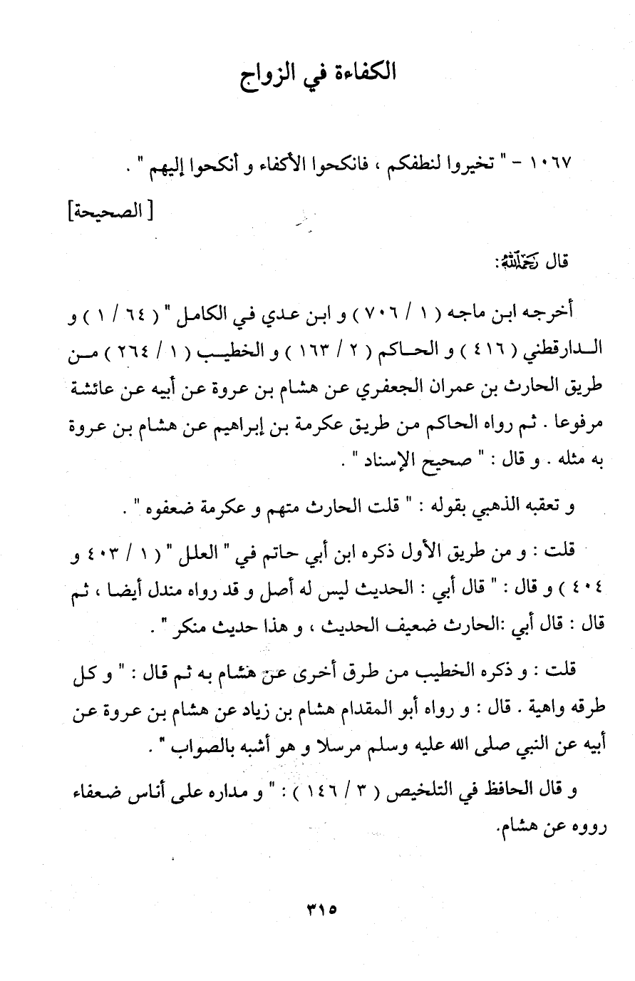 1067 - " تخيروا لنطفكم، فانكحوا الأكفاء وأنكحوا إليهم ".